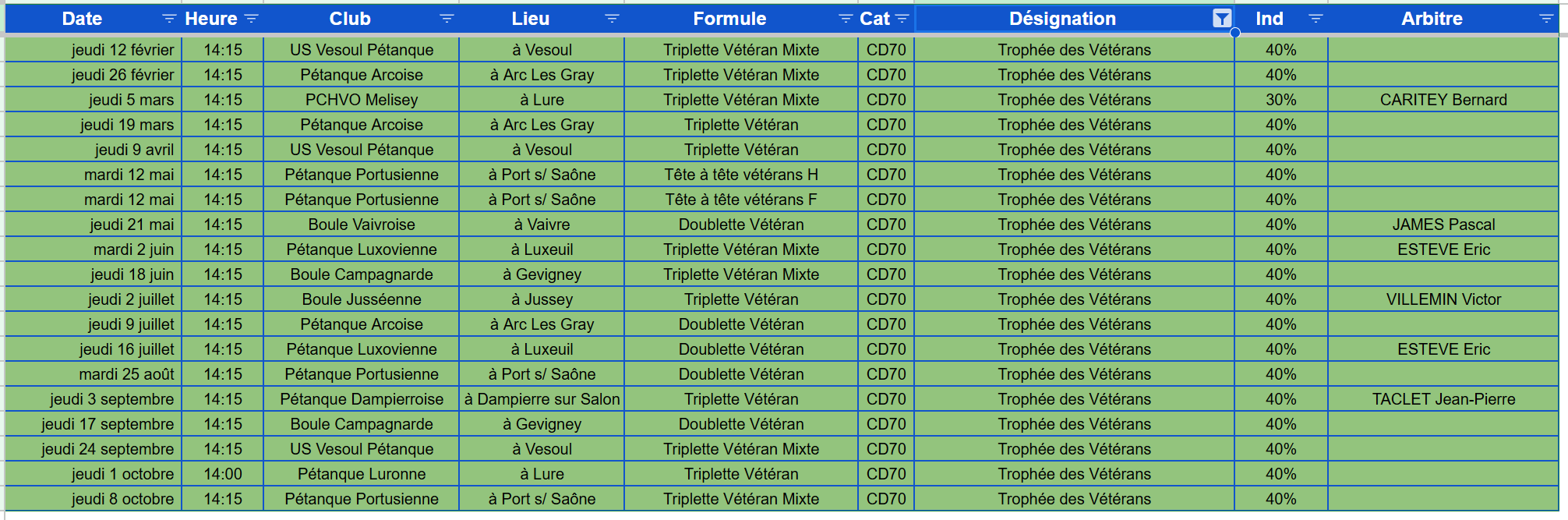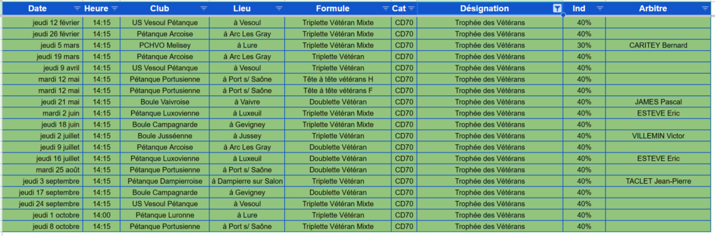 Après la dernière rencontre du 2 octobre à Port Sur Saône, Le Vainqueur chez les hommes est Patrick EDME de US VESOUL, et la 1ère Féminines est Sylvia PY de US VESOUL qui est  également 2ème au classement général. En 3ème position, Victor PEREIRA de US VESOUL .